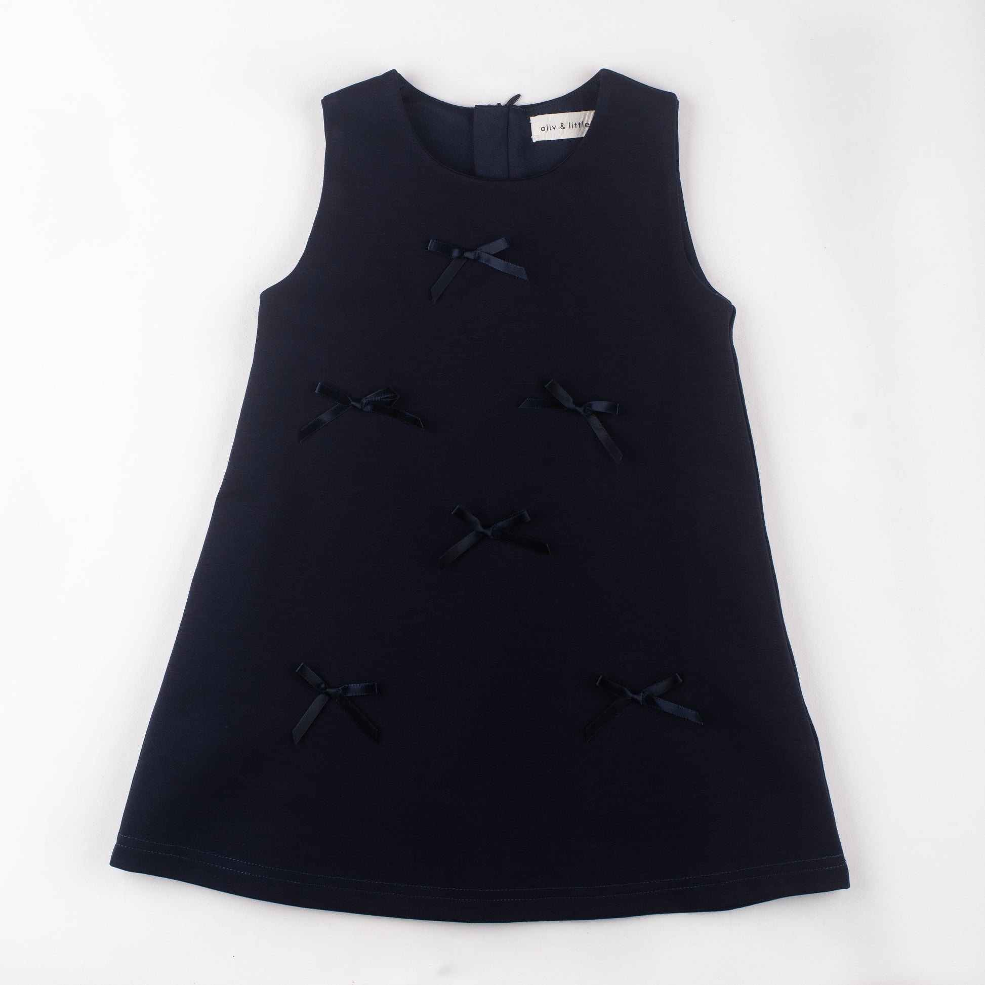 Introducing Emma—a sleek, sleeveless dark dress with a minimalist charm. It features tone-on-tone ribbons for a subtle touch of sweetness and a back zipper for easy wear. Perfect for parties or any special occasion where simple and classy is just right.