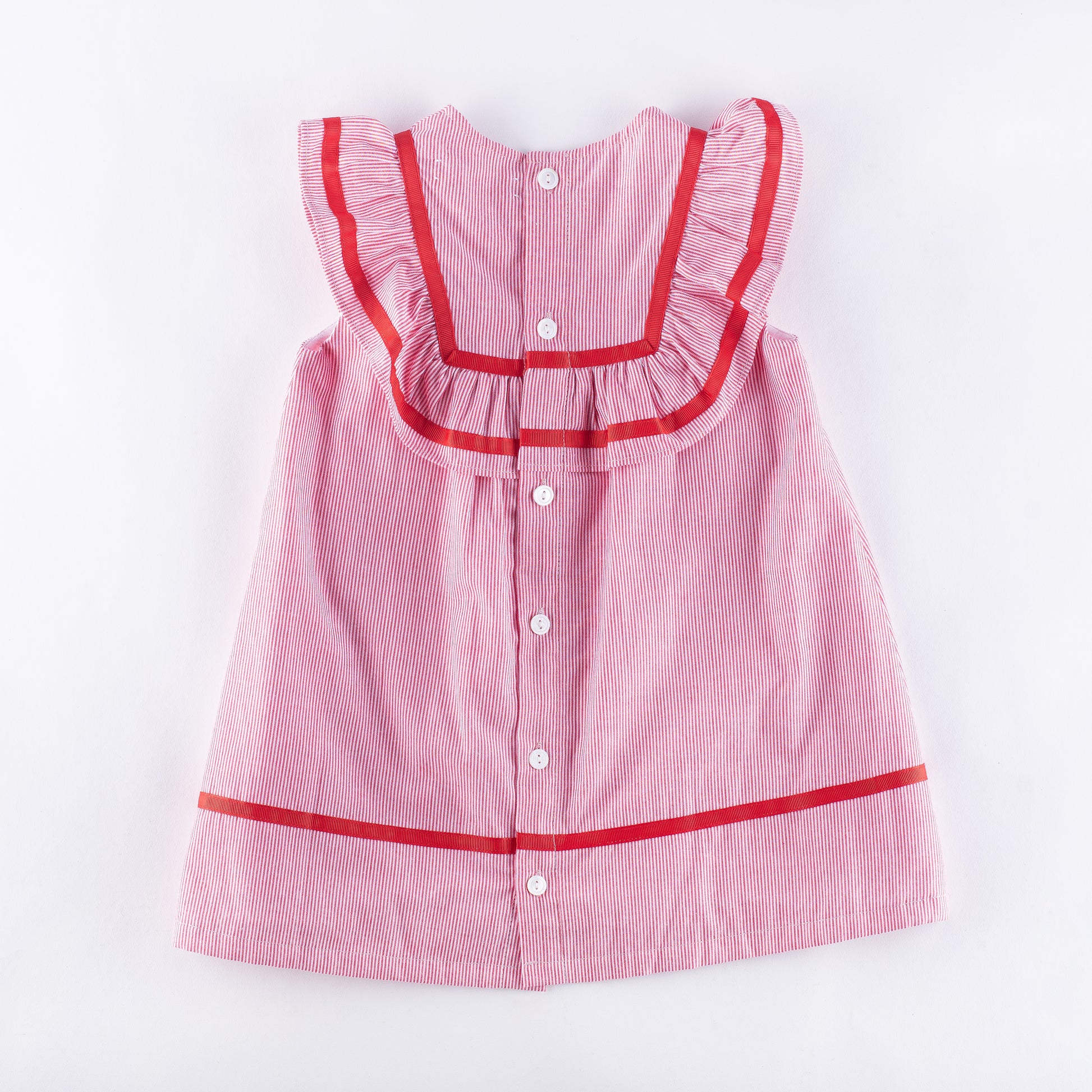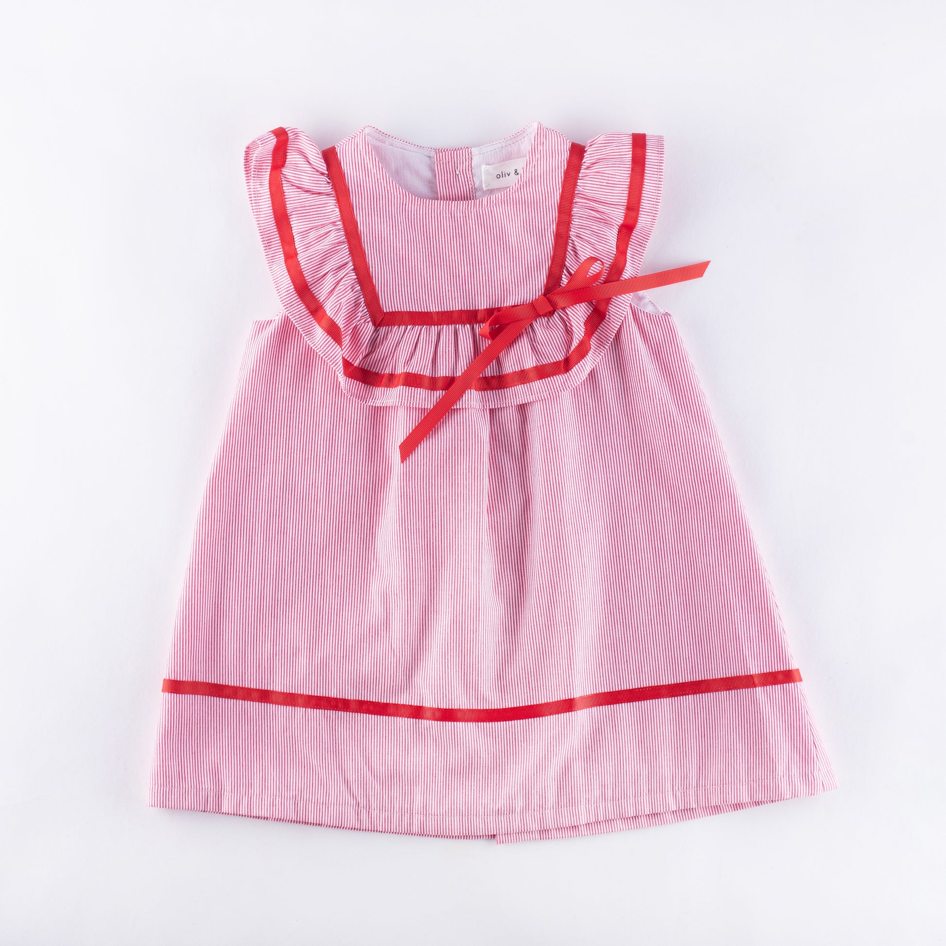 Say hello to the Jiana—a little burst of joy in red and white. With its sweet pinstripe pattern and fluttery ruffle details, it’s equal parts classic and playful. Perfect for parties, playdates, or sunny days out. Just add sandals or sneakers and she’s good to go!