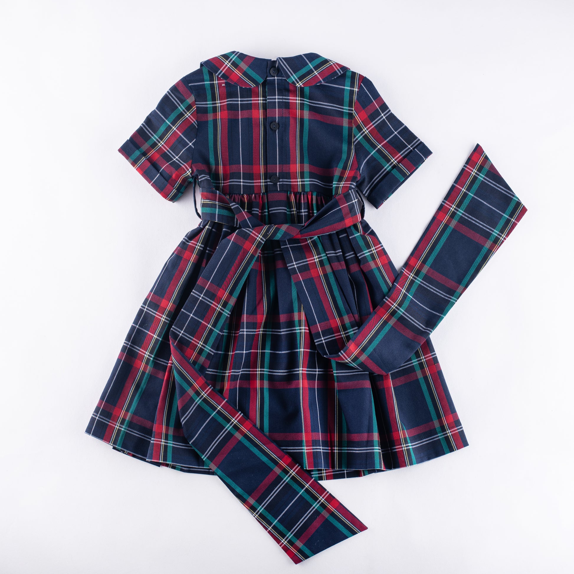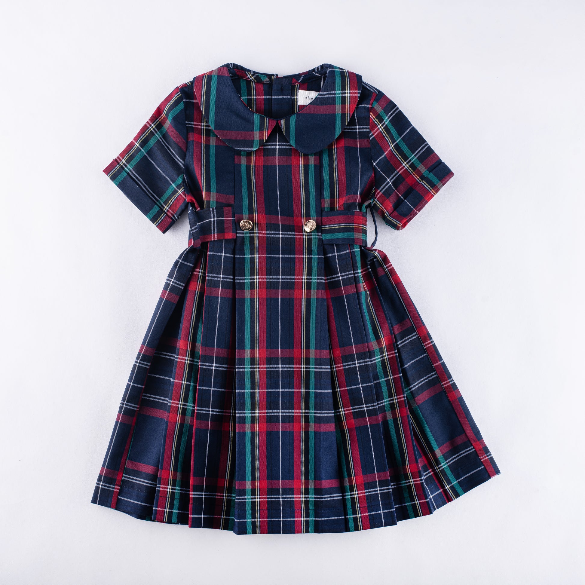 Meet your new favorite for festive seasons and memory-making moments—our Highland Holiday Dress. With its rich navy base, woven through with deep red and forest green plaid, this dress brings a timeless, heritage-inspired charm that feels both polished and playful.